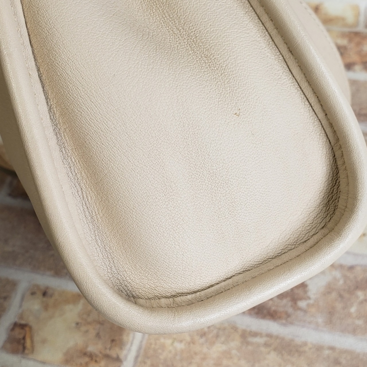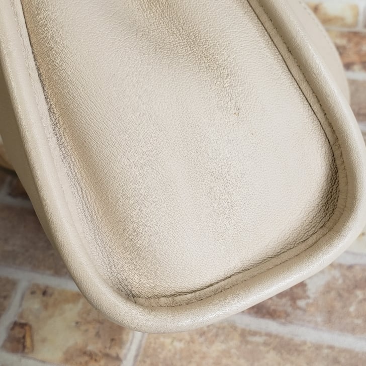 外装レザー全体に薄いスレ汚れ、軽いスレ、線状の薄いスレがあります。(画像参照)