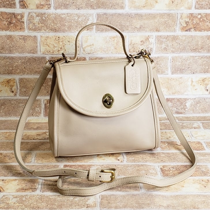 オールドコーチ ☆ USA製 レザー ターンロック 2WAY ミニ ショルダーバッグ アイボリー ハンドバッグ