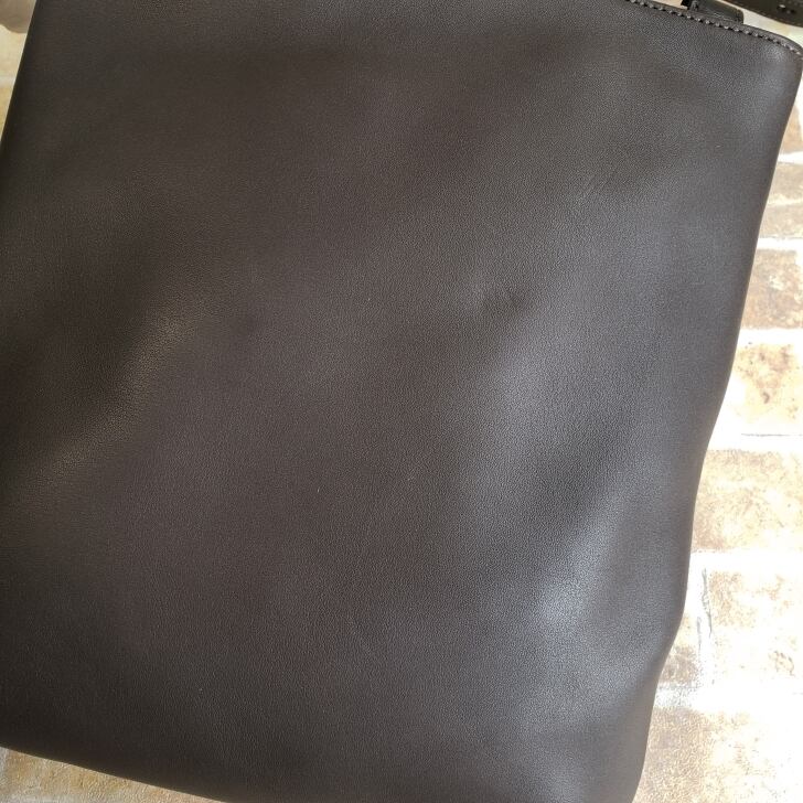 未使用品ですが、保管時にできた薄い線状のスレや軽いスレ、線状の軽い圧迫痕が外装レザー所々にあります。(画像参照)