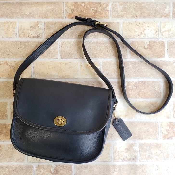 オールドコーチ ☆ USA製 ターンロック レザー ミニ ショルダーバッグ ネイビー