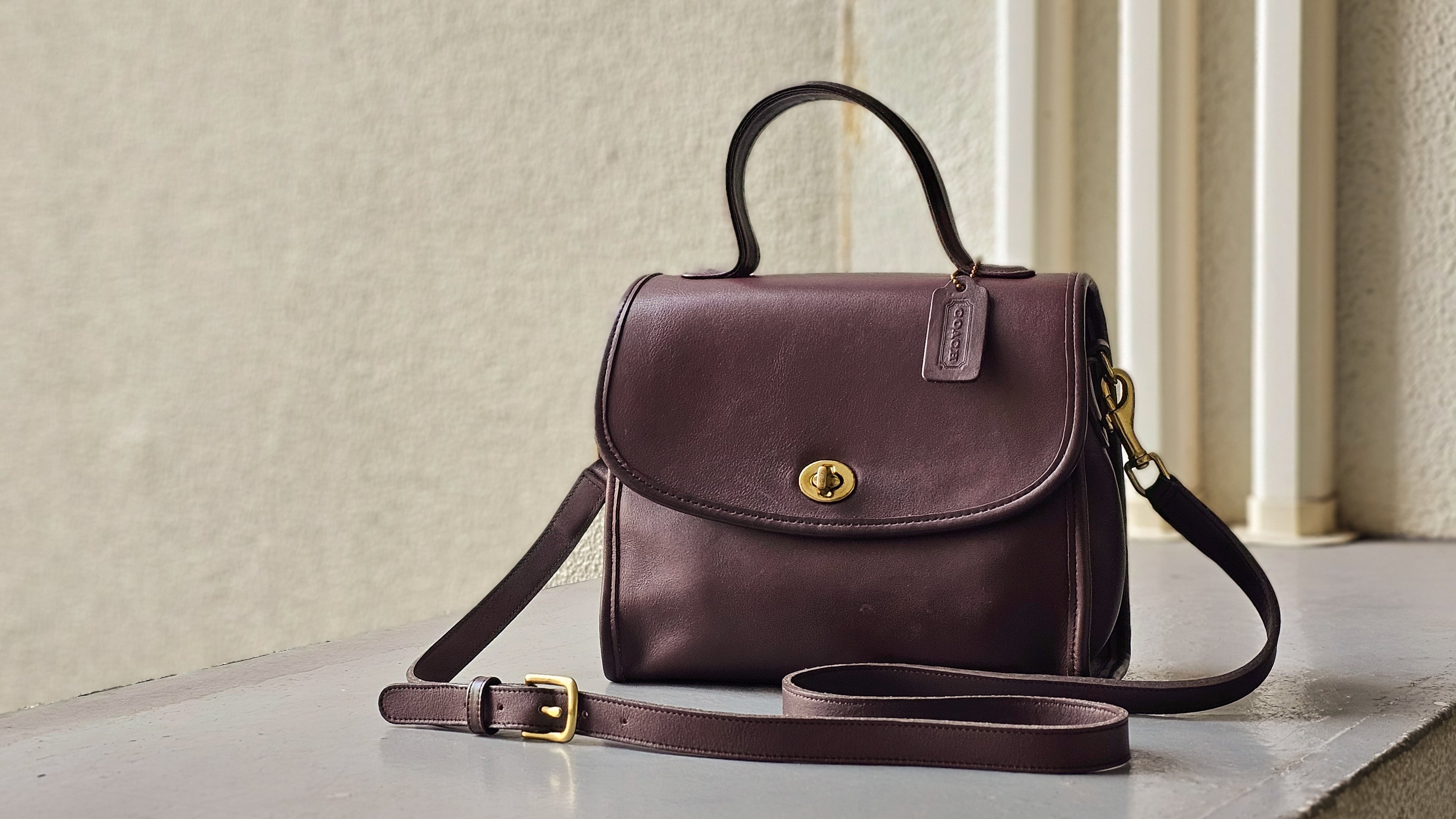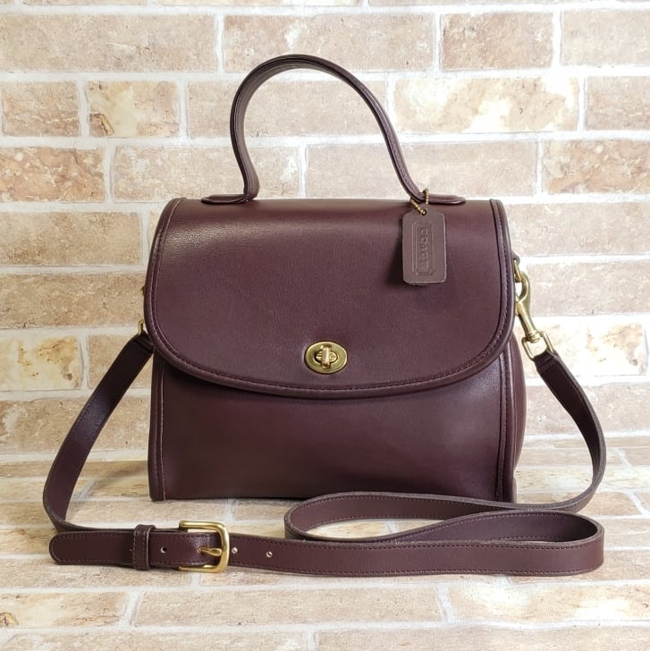 オールドコーチ ☆ USA製 ターンロック 2WAY ショルダーバッグ ダークブラウン 自立OK ハンドバッグ