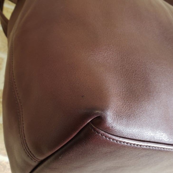 外装レザーに約2cm程度のシミがあります。(画像参照)