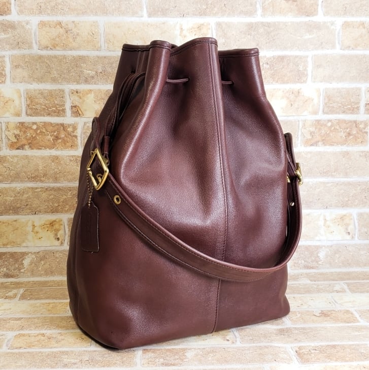 オールドコーチ ☆ USA製 レザー 巾着 ワンショルダーバッグ ダークブラウン ヴィンテージ
