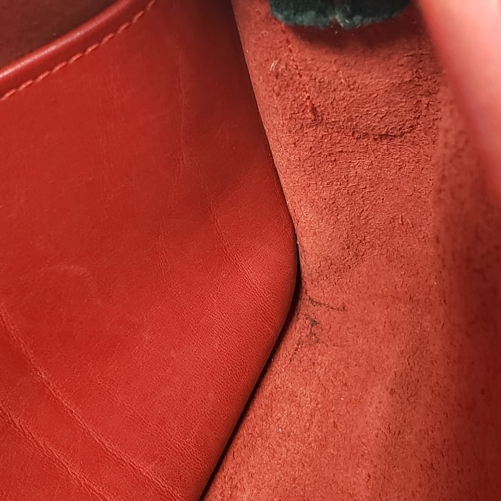 内装のスエードレザーの底右角辺りにペン汚れがあります。(画像参照)