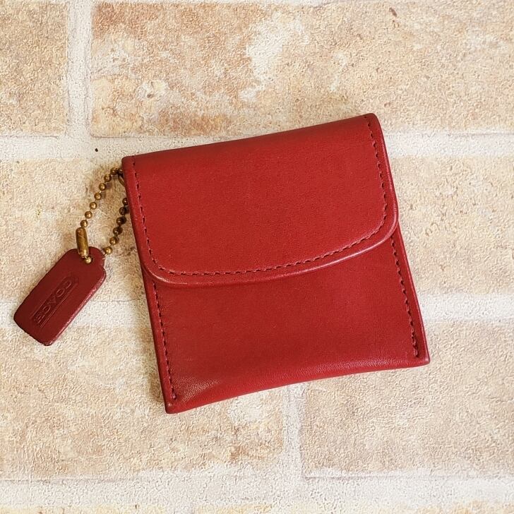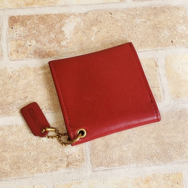 オールドコーチ ☆ 薄型 スクエア コインケース 小銭入れ 小ぶり レッド ユニセックス