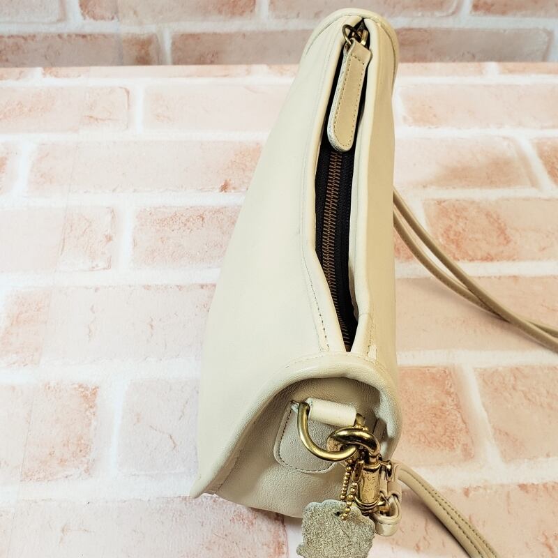 ・柔らかいアイボリーカラー!小ぶりのビンテージ/ヴィンテージのコーチ、オールドコーチの斜め掛けOKなショルダーバッグです。