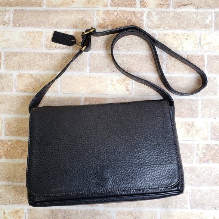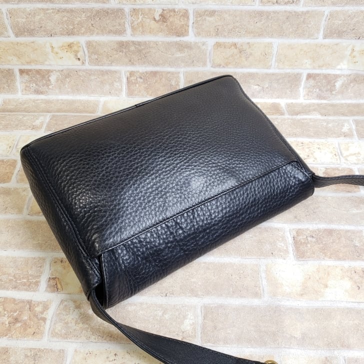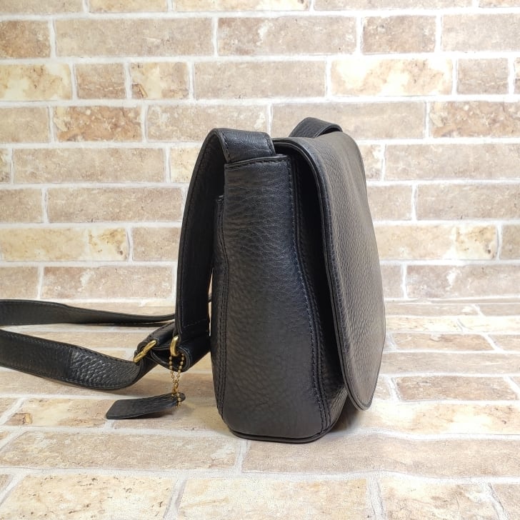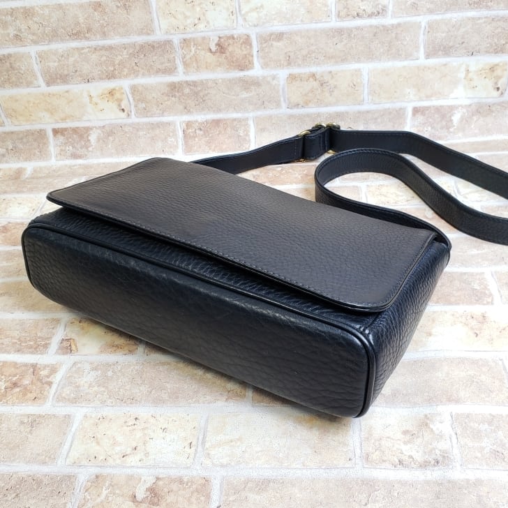 オールドコーチ ☆ イタリア製 シュリンクレザー フラップ ショルダーバッグ ブラック