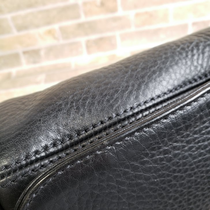 外装レザー所々に薄い線状のスレ、爪でひっかいたような軽いスレ、フチや底面にスレ、スレによる軽い退色があります。(画像参照)