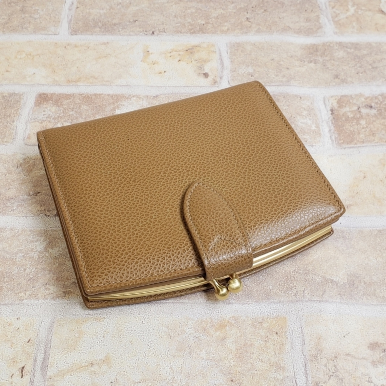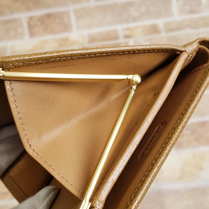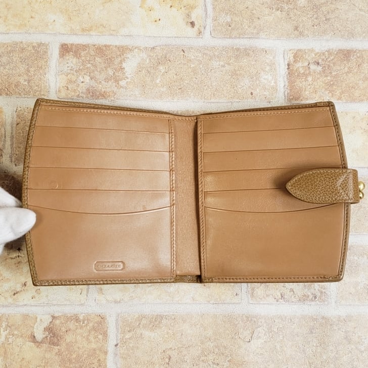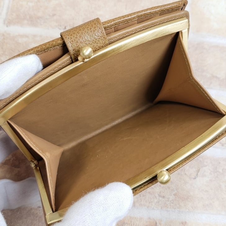 オールドコーチ ☆ イタリア製 がま口 レザー 折財布 ベージュ 二折財布 ウォレット
