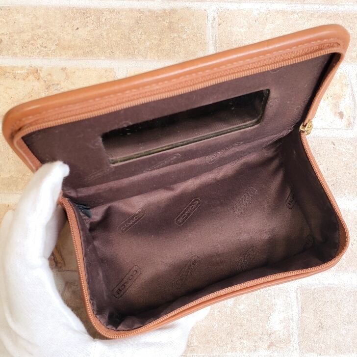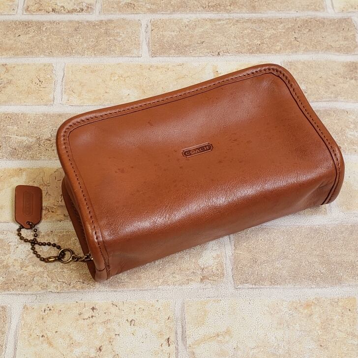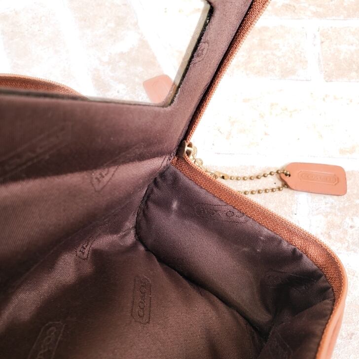 オールドコーチ ☆ レザー ポーチ コスメポーチ ブラウン マルチケース ミラー付 自立OK