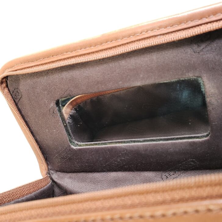 フラップ裏にミラーが付いており、コスメポーチとして、カッチリしているので眼鏡ケースとしても使っていただけます。