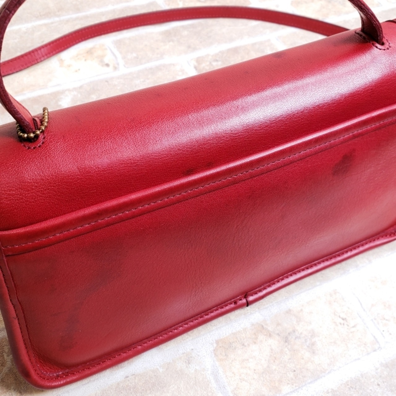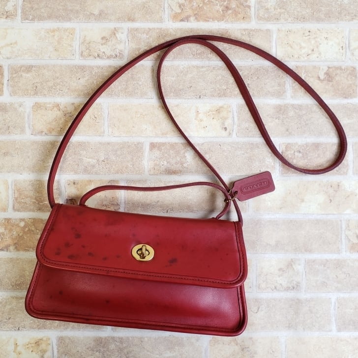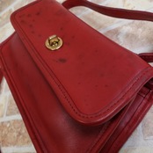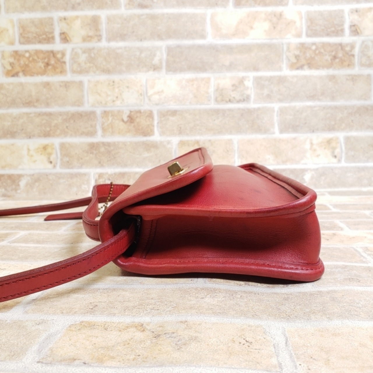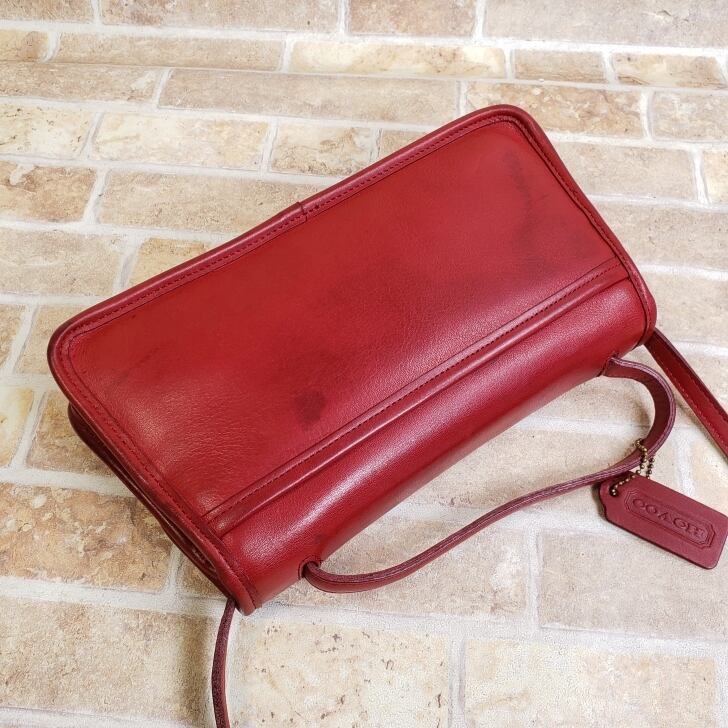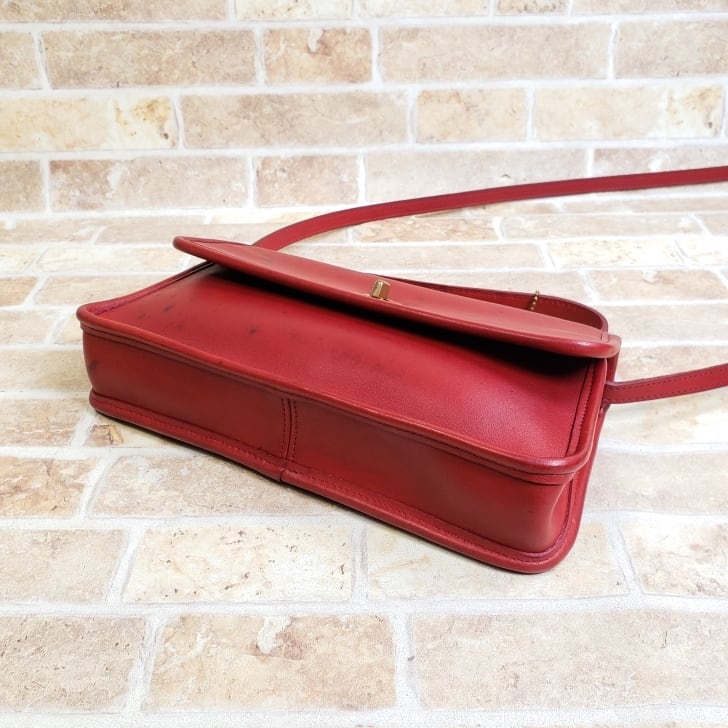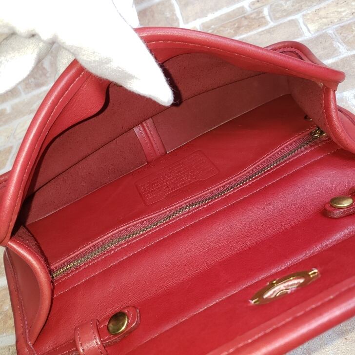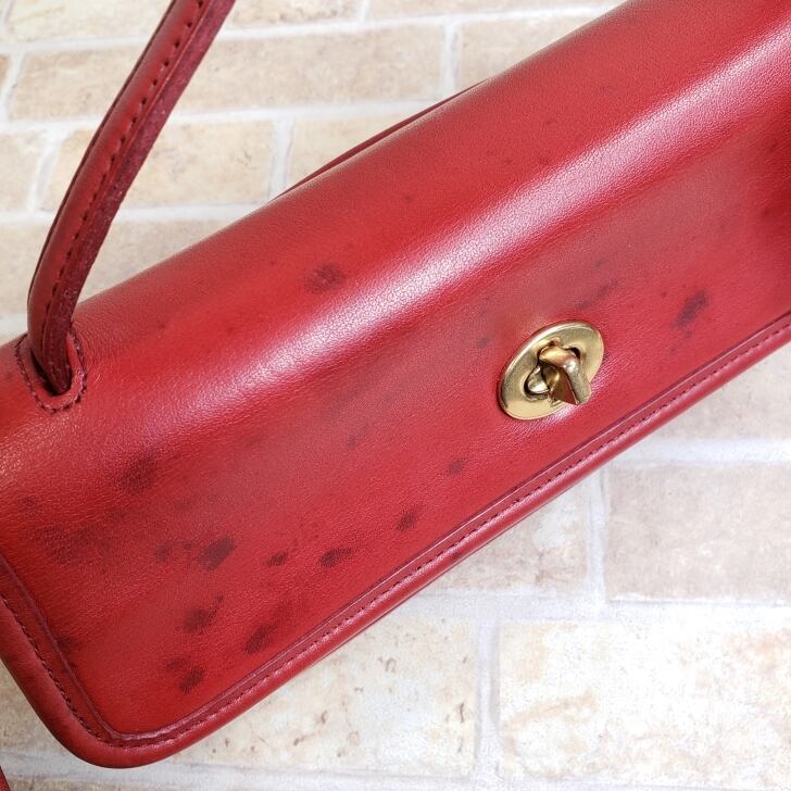 オールドコーチ ☆ USA製 レザー ターンロック 2WAY 横長 ショルダーバッグ レッド ハンドバッグ