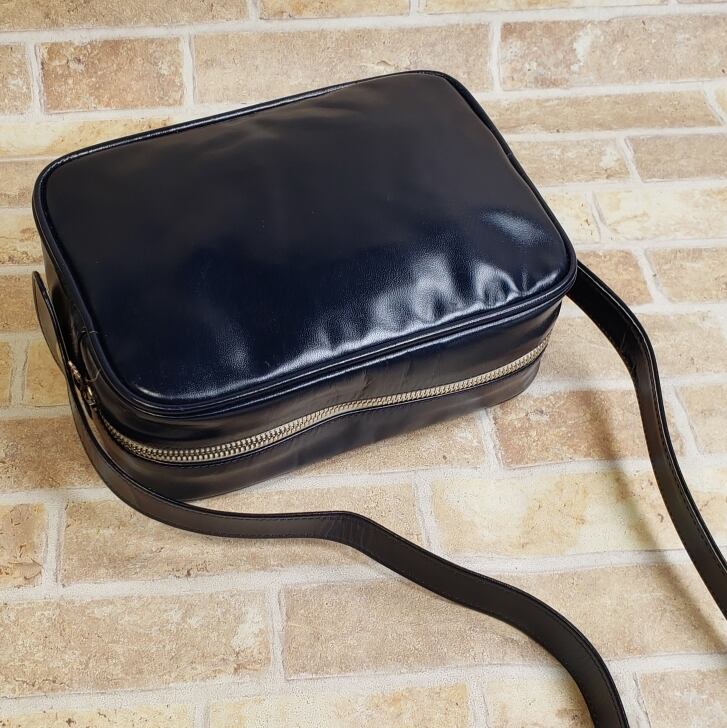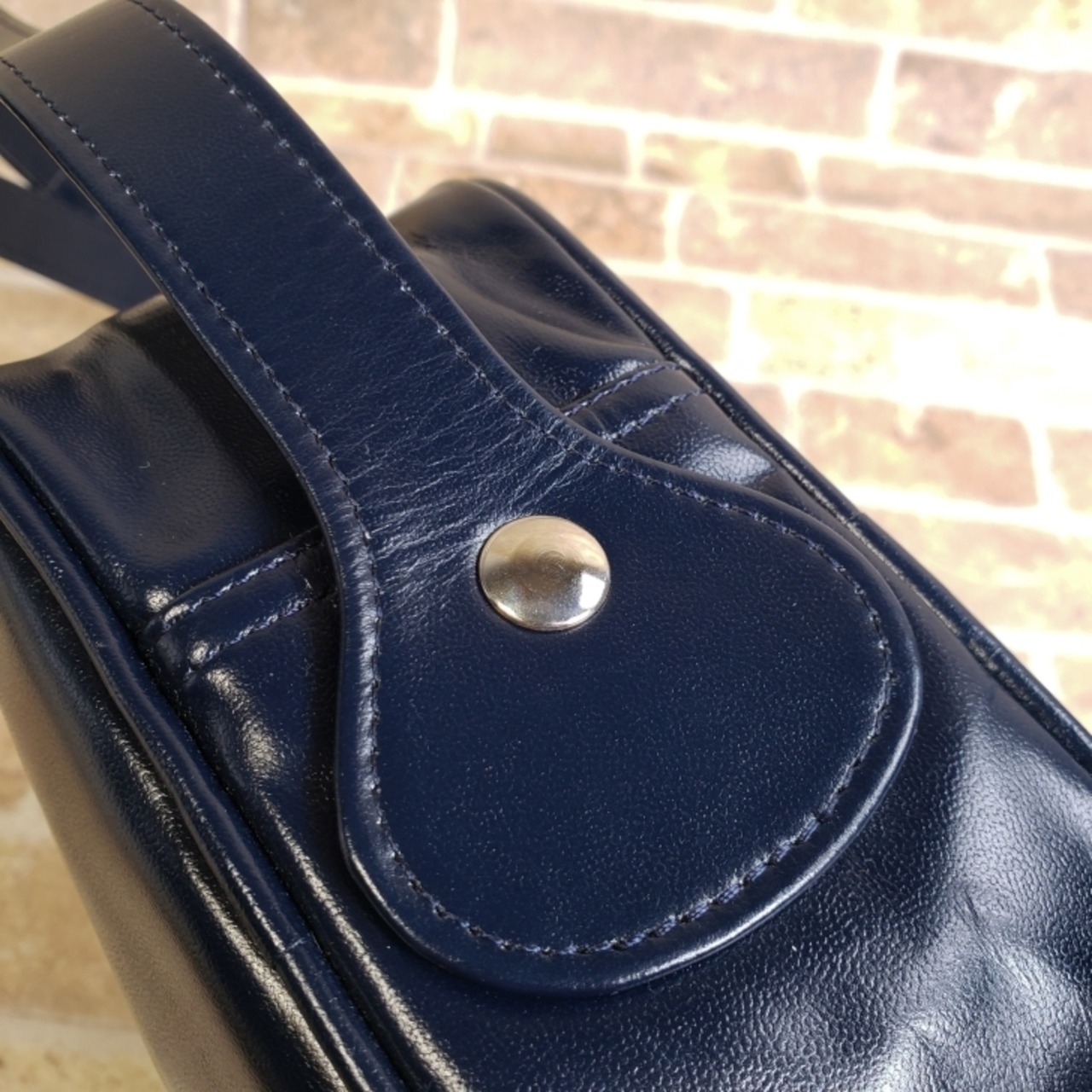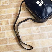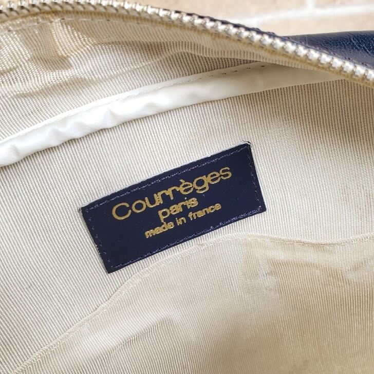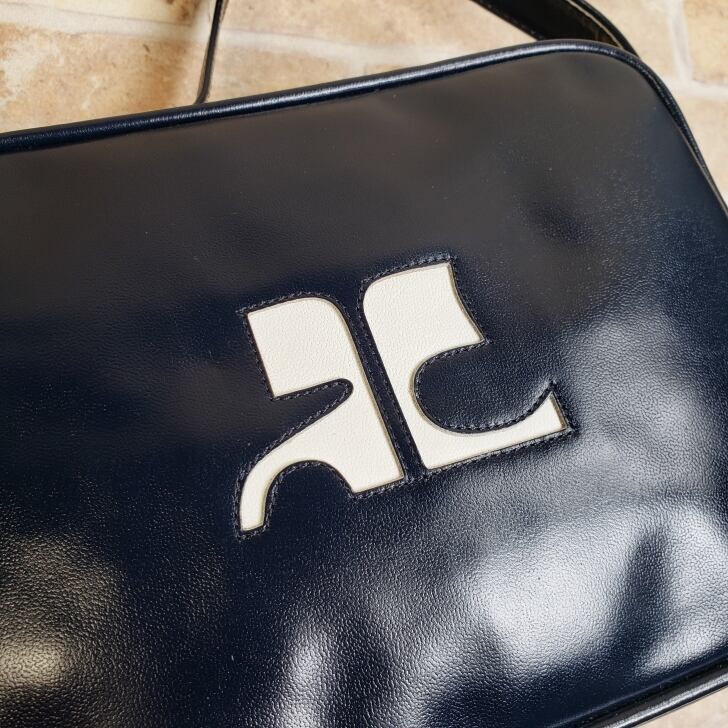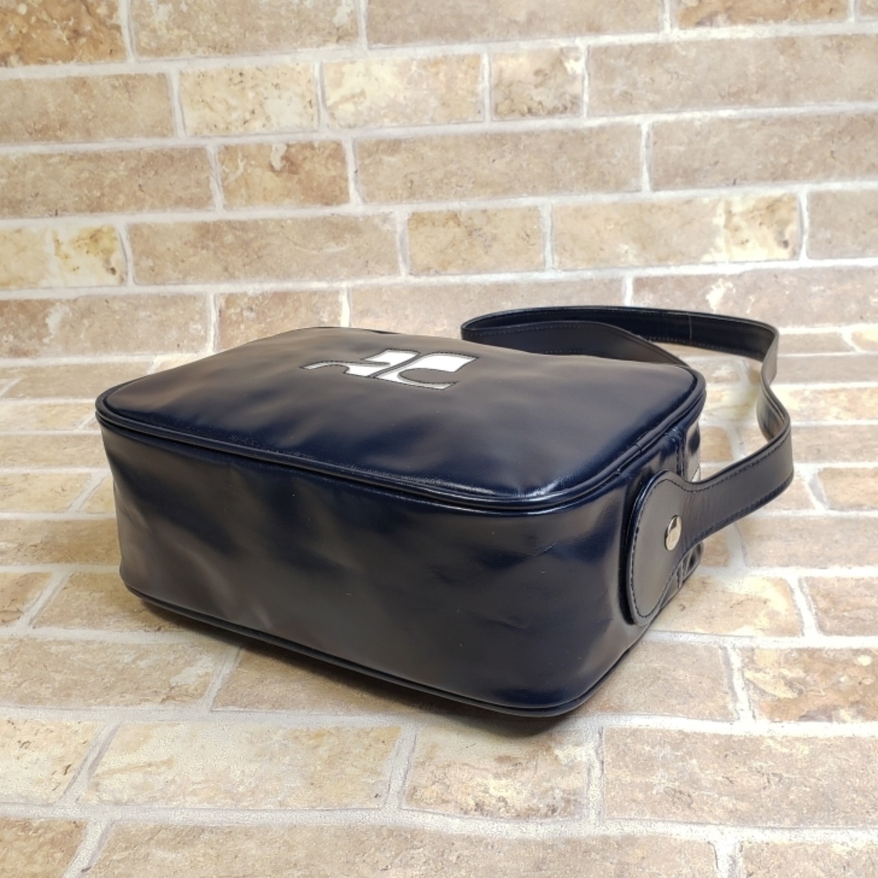 クレージュ Courreges ☆ ヴィンテージ レザー ショルダーバッグ フランス製 ビッグロゴ ネイビー