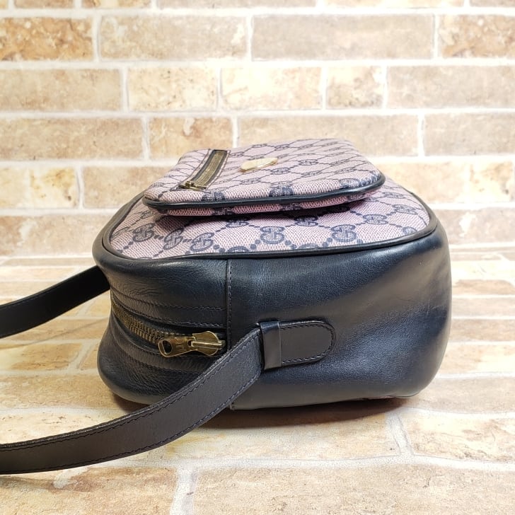 オールドグッチ ☆ ヴィンテージ GG柄 レザーコンビ ショルダーバッグ イタリア製 ネイビー