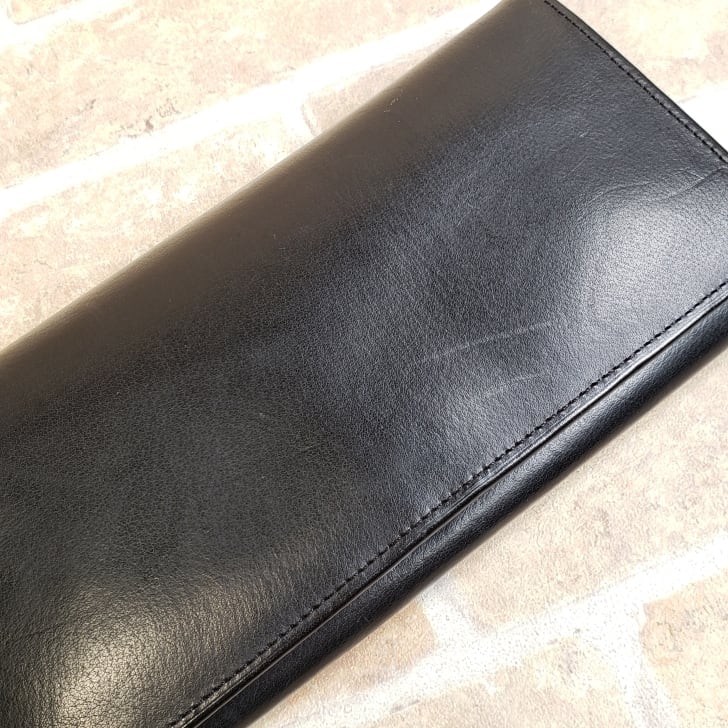 内装レザーのポケット同士が当たってできた軽い圧迫痕があります。(画像参照)