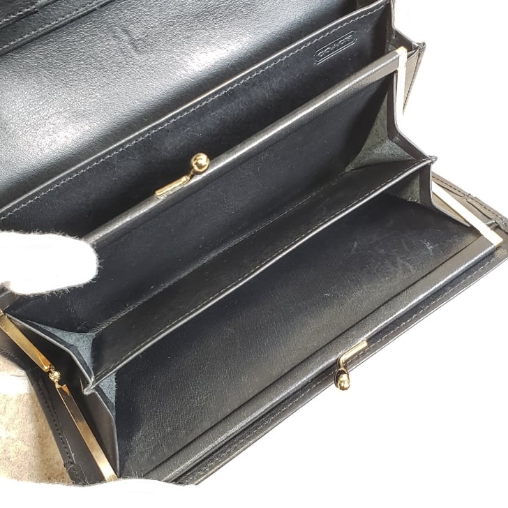 オールドコーチ ☆ レザー フラップ長財布 がま口小銭室 ブラック 財布 COACH 財布 ウォレット ユニセックス