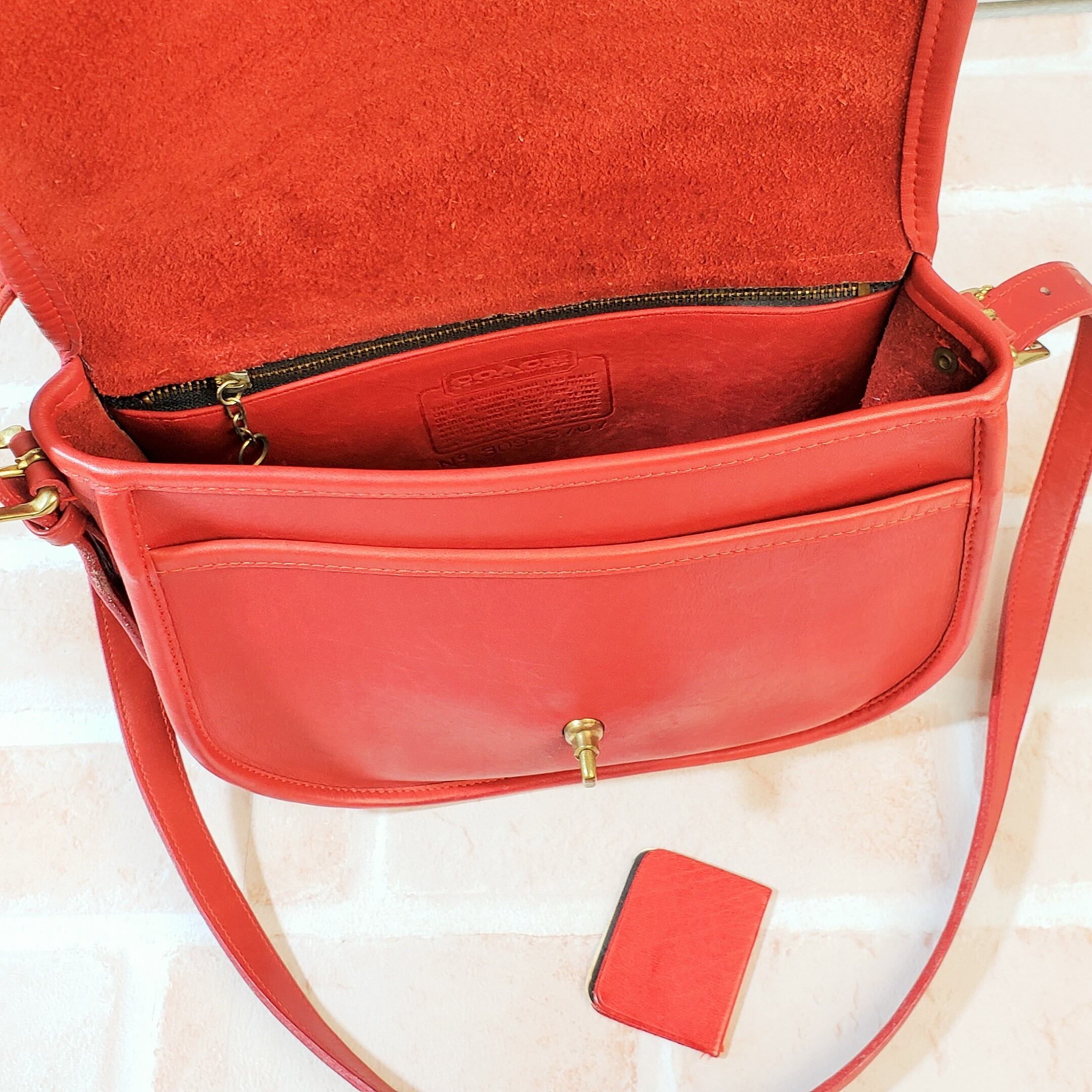 レア! オールドコーチ ☆USA製 NY刻印 レザー ターンロック ショルダーバッグ レッド