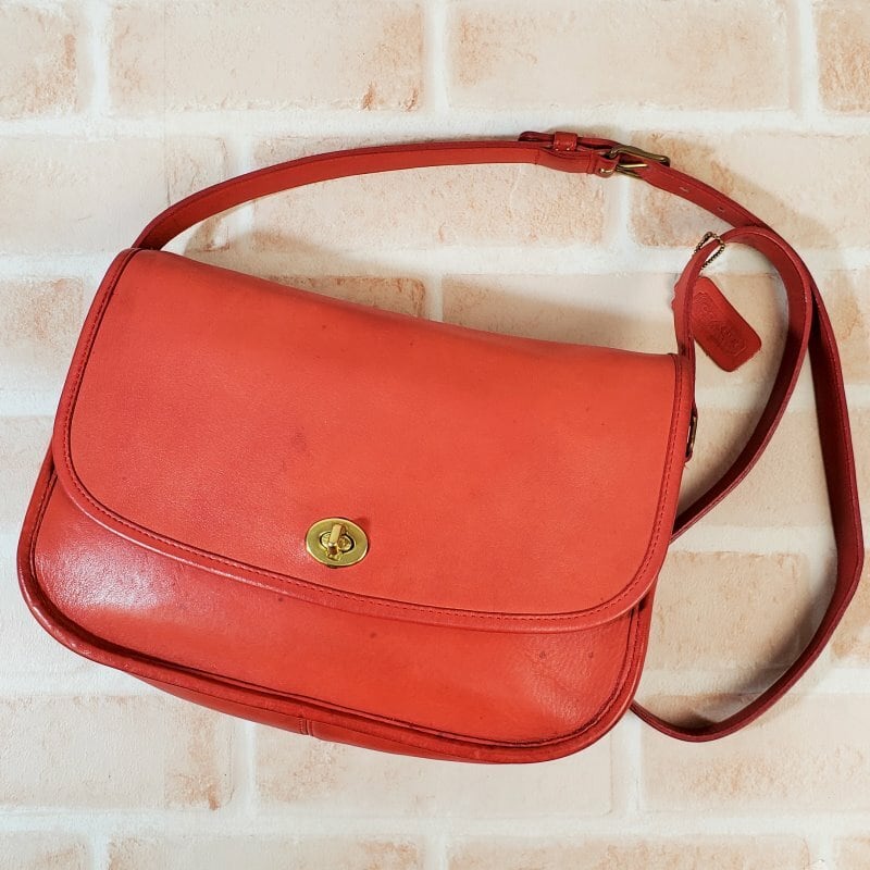 オールドコーチ ☆USA製 NY刻印 ターンロック レザー ショルダーバッグ スカーレット