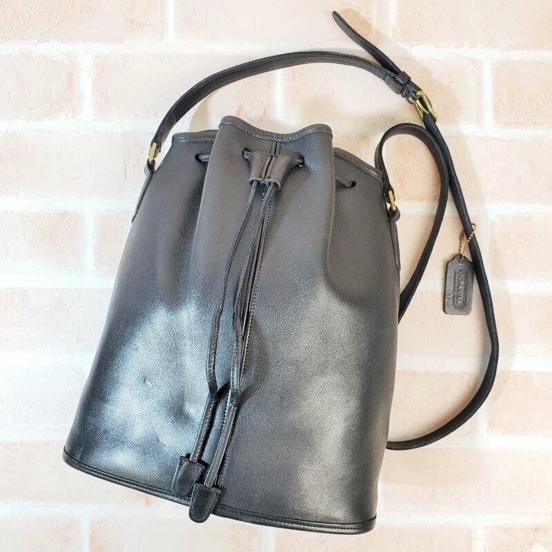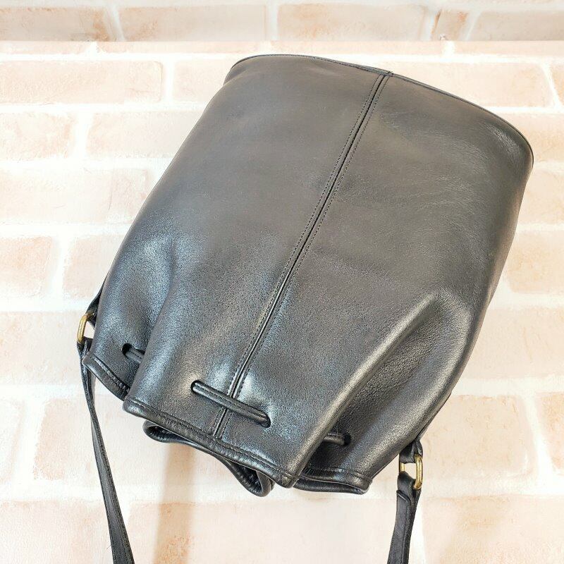 オールドコーチ ☆USA製 レザー 巾着 ショルダーバッグ ブラック