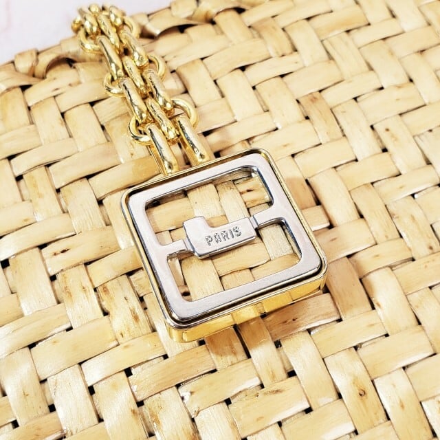 ・かっちりとしたデザインで、自立OKなかごバッグです。ゴールドのチェーンと先のロゴについた留め具(マグネット)がアクセントです。