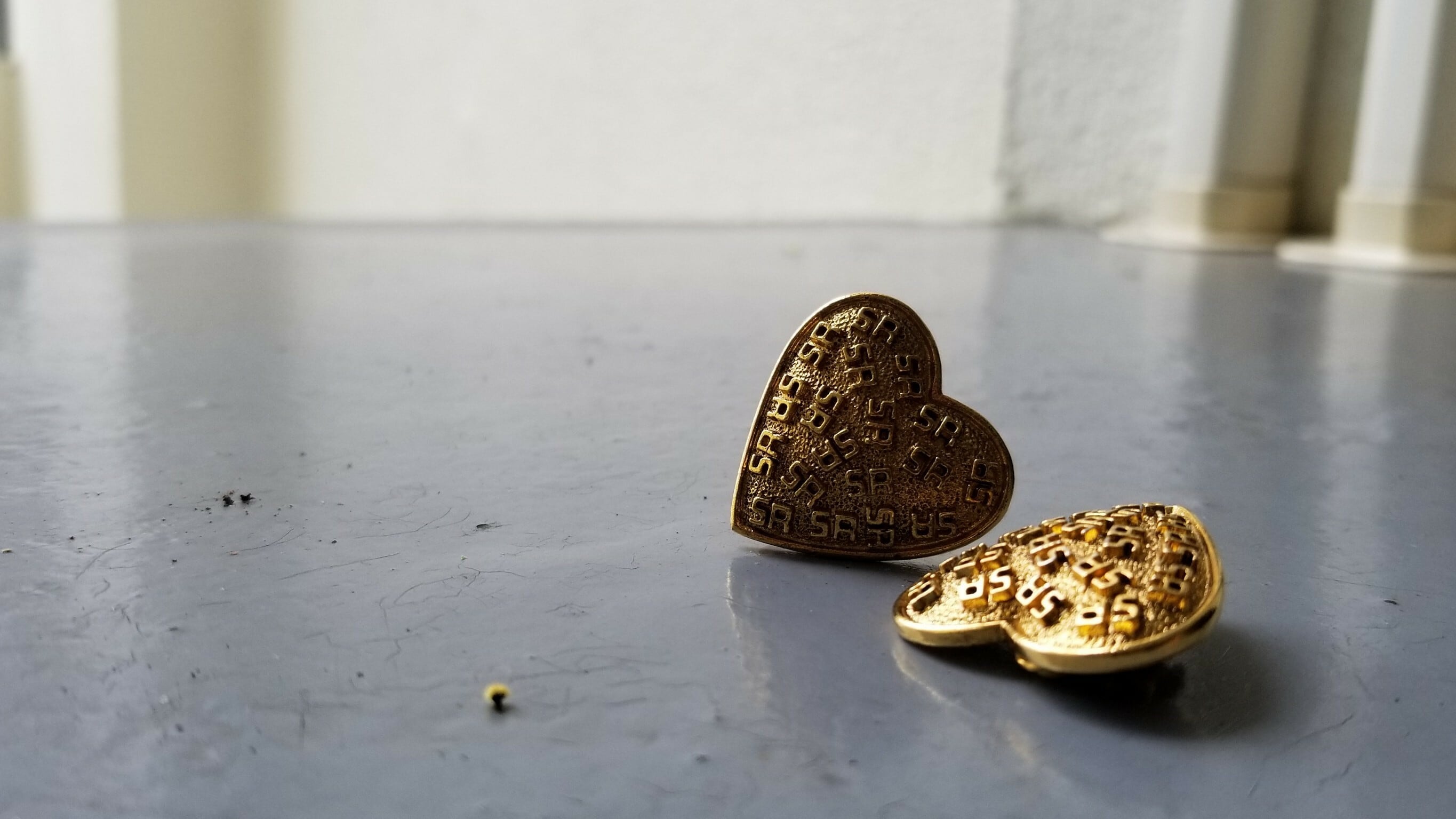・ロゴが沢山散りばめられたハート型のイヤリングです。