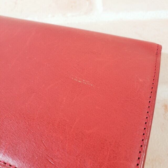 使用感はとても少ないのですが、保管時にできた全体的にレザーの薄いスレ・爪でひっかいたような薄いスレがあります。