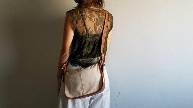 ・キャンバスと、レザーの組み合わせが素敵なショルダーバッグです。