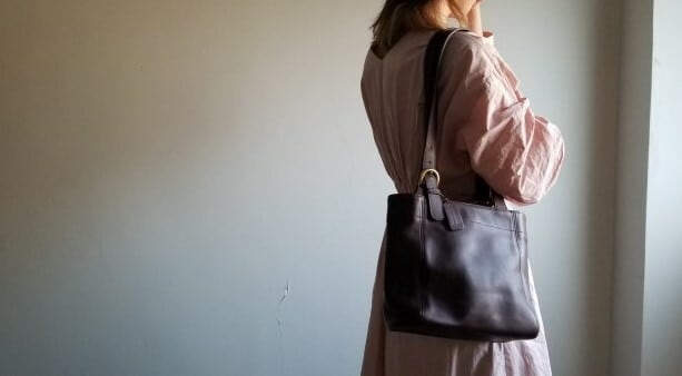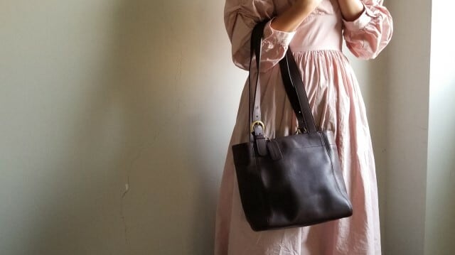 ・ダークブラウンのレザーが合わせやすいビンテージ/ヴィンテージのコーチ、オールドコーチの肩掛けOKなトートバッグです。
