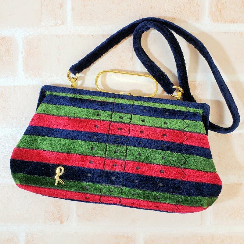 オールドロベルタ ☆ ヴィンテージ 2WAY ベロア セミショルダーバッグ マルチカラー ミラー付 イタリア製 ロベルタディカメリーノ