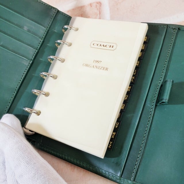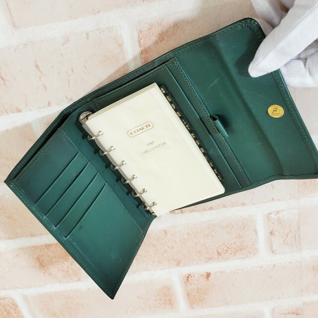 オールドコーチ ☆ レザー システム手帳 ダークグリーン 財布 ヴィンテージ
