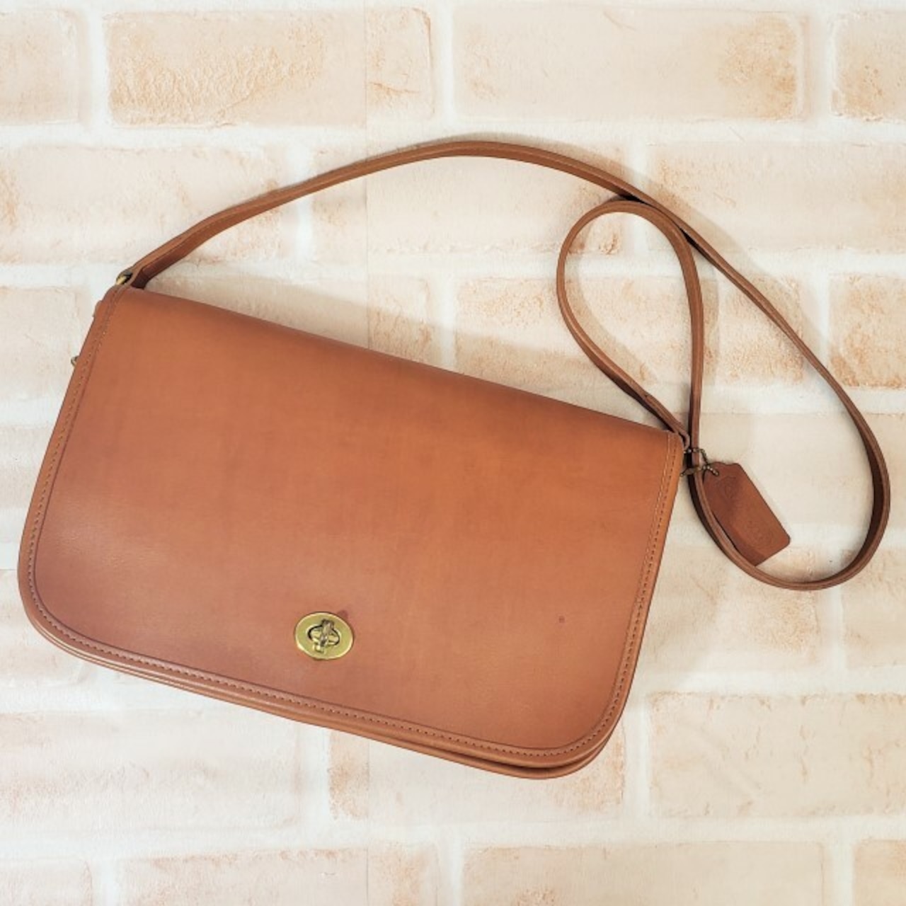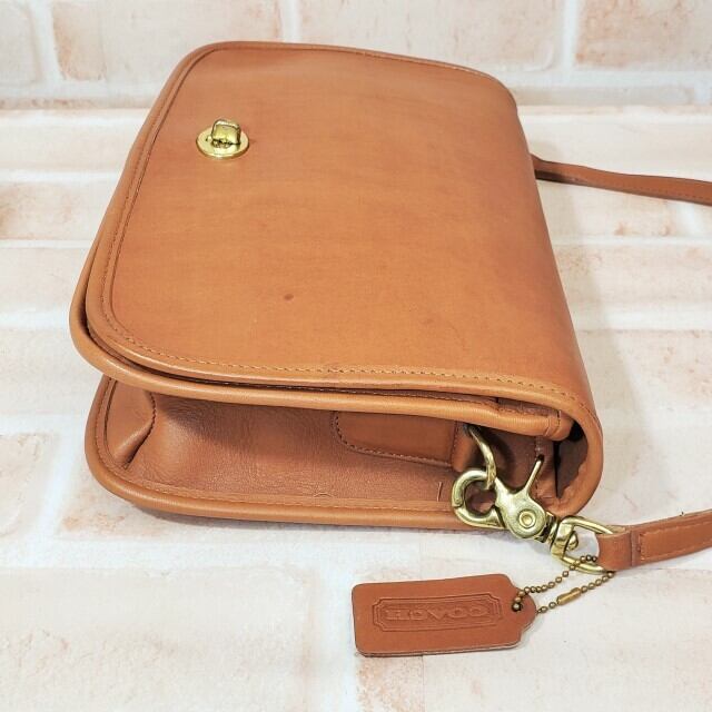 美品 オールドコーチ ☆ USA製 レザー ターンロック ショルダーバッグ キャメルブラウン クラッチ