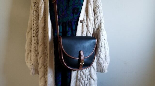 ・バイカラーと中央のベルトがポイント!!ビンテージ/ヴィンテージのコーチ、オールドコーチの斜め掛けOK ショルダーバッグです。バイカラーデザインはあまりないので、珍しいです。