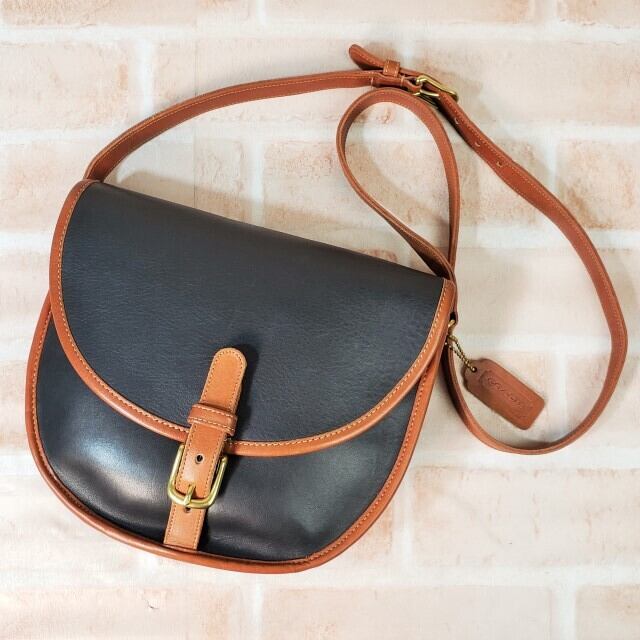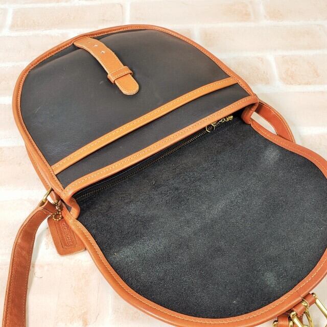 美品 オールドコーチ ☆USA製 レザー バイカラー ショルダーバッグ ブラック