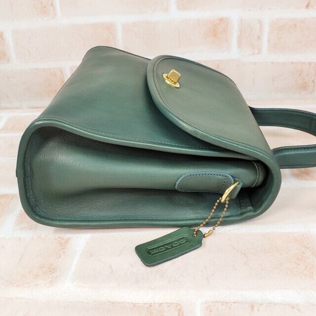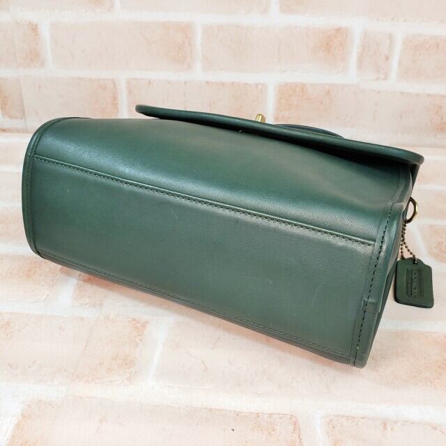 超美品 オールドコーチ ☆USA製 ターンロック 2WAY ショルダーバッグ グリーン 自立OK ハンドバッグ