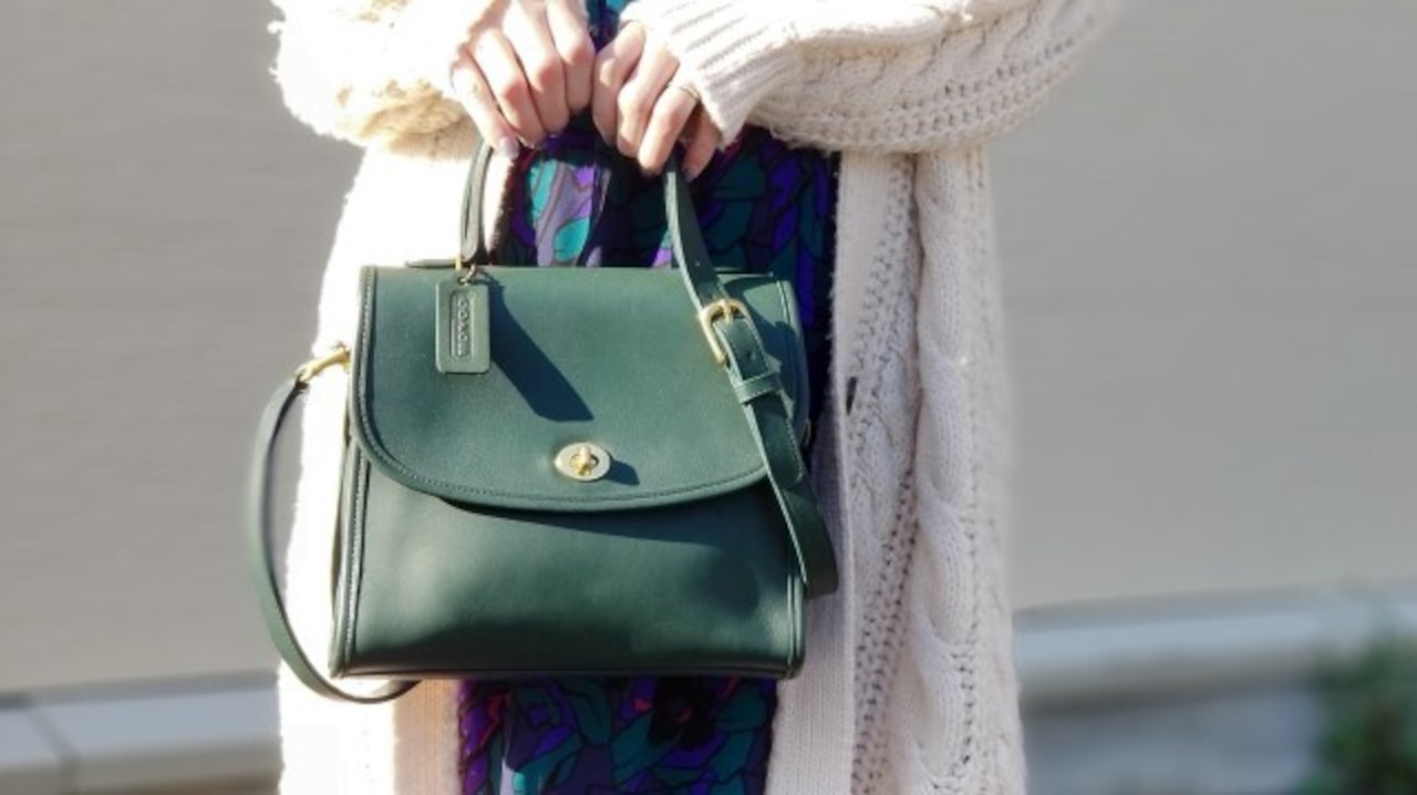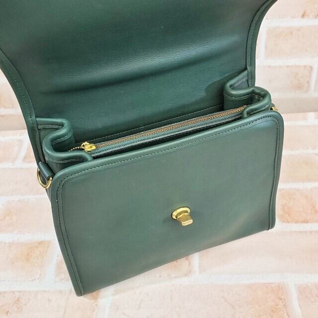 ・シックなダークグリーンカラーが素敵!人気のターンロックデザインのビンテージ/ヴィンテージのコーチ、オールドコーチの2WAYショルダーバッグです。2室で、適度な大きさがあります。自立します。
