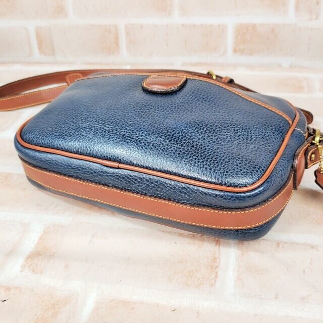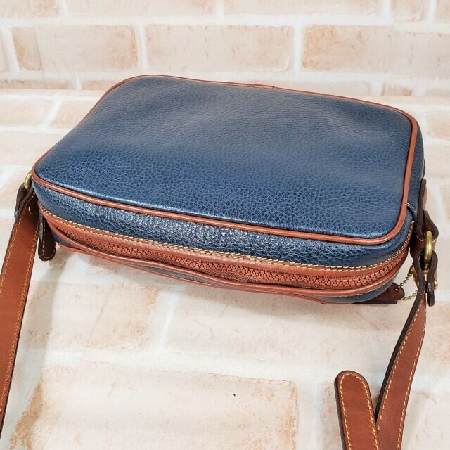 オールドコーチ ☆ USA製 シュリンクレザー ショルダーバッグ バイカラー ネイビー