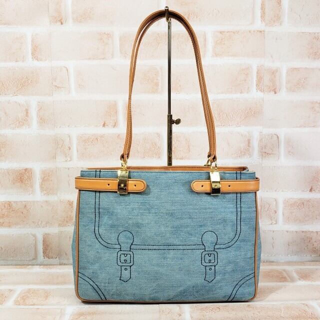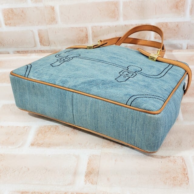 ロベルタディカメリーノ ☆ だまし絵 デニム生地 ハンドバッグ ブルー系 イタリア製 B5OK ROBERTA DI CAMERINO