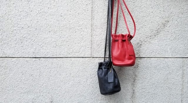 ・長めの2本のショルダーと巾着デザインがポイント! ビンテージ/ヴィンテージのコーチ、オールドコーチのミニショルダーバッグです。