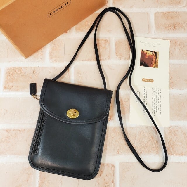 超美品 オールドコーチ ☆ USA製 レザー ターンロック ミニ ショルダーバッグ マチ無し ユニセックス ツーリストポーチ