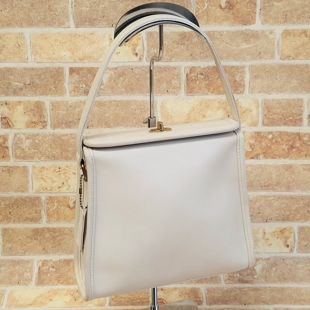 ・人気のターンロックデザインのビンテージ/ヴィンテージのコーチ、オールドコーチのハンドバッグです。アイボリーカラーが爽やかな印象です。