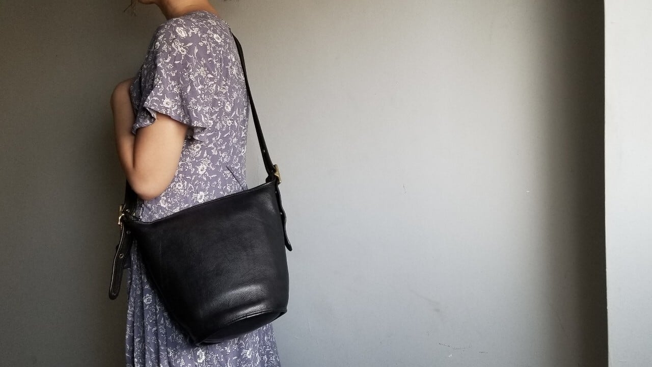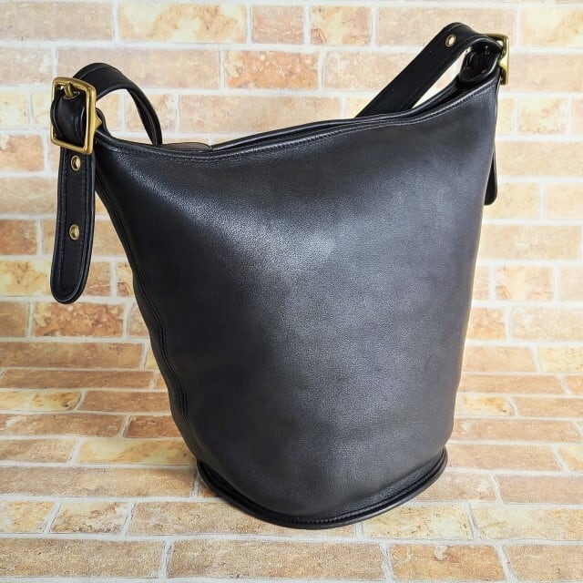 オールドコーチ ☆ USA製 レザー ダッフル ショルダーバッグ ダブルサック A4OK バケツ型 ブラック ユニセックス