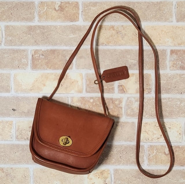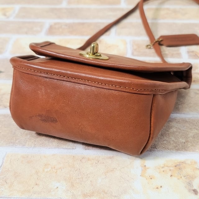 オールドコーチ ☆ USA製 レザー ターンロック ミニ ショルダーバッグ キャメルブラウン