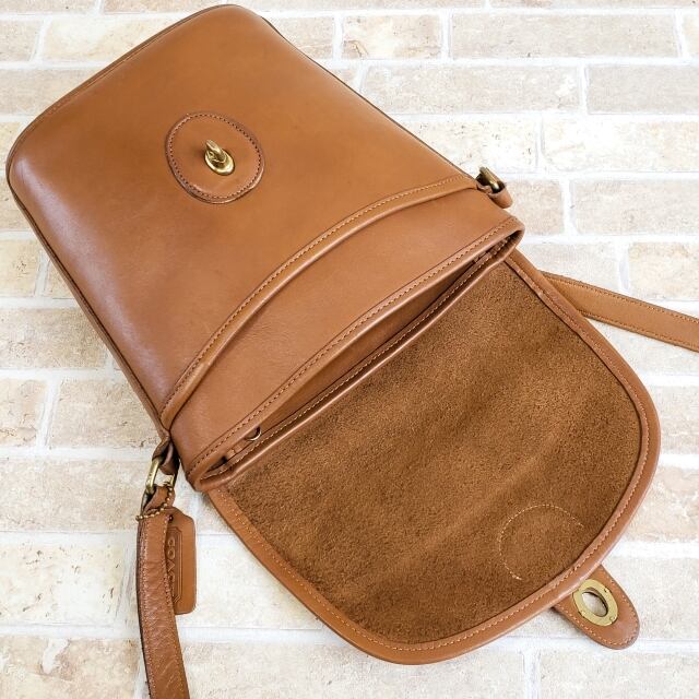 オールドコーチ ☆ USA製 ターンロック レザー ショルダーバッグ キャメルブラウン