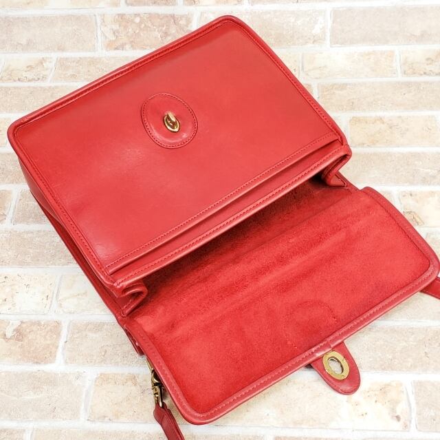 オールドコーチ ☆USA製 ウィリス ターンロック レザー 2WAY ショルダーバッグ レッド coach