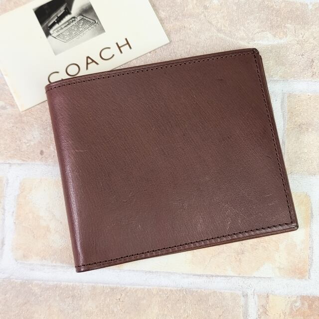 未使用 オールドコーチ ☆ レザー 2つ折り 札入れ 折財布 ブラウン coach ユニセックス