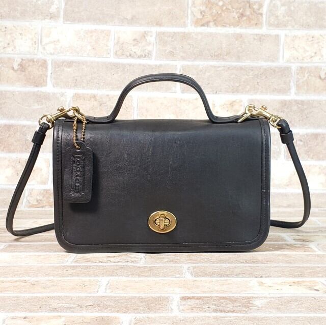 美品 オールドコーチ ☆ USA製 ターンロック レザー 2WAY 小ぶり ショルダーバッグ ブラック ポシェット ハンドバッグ