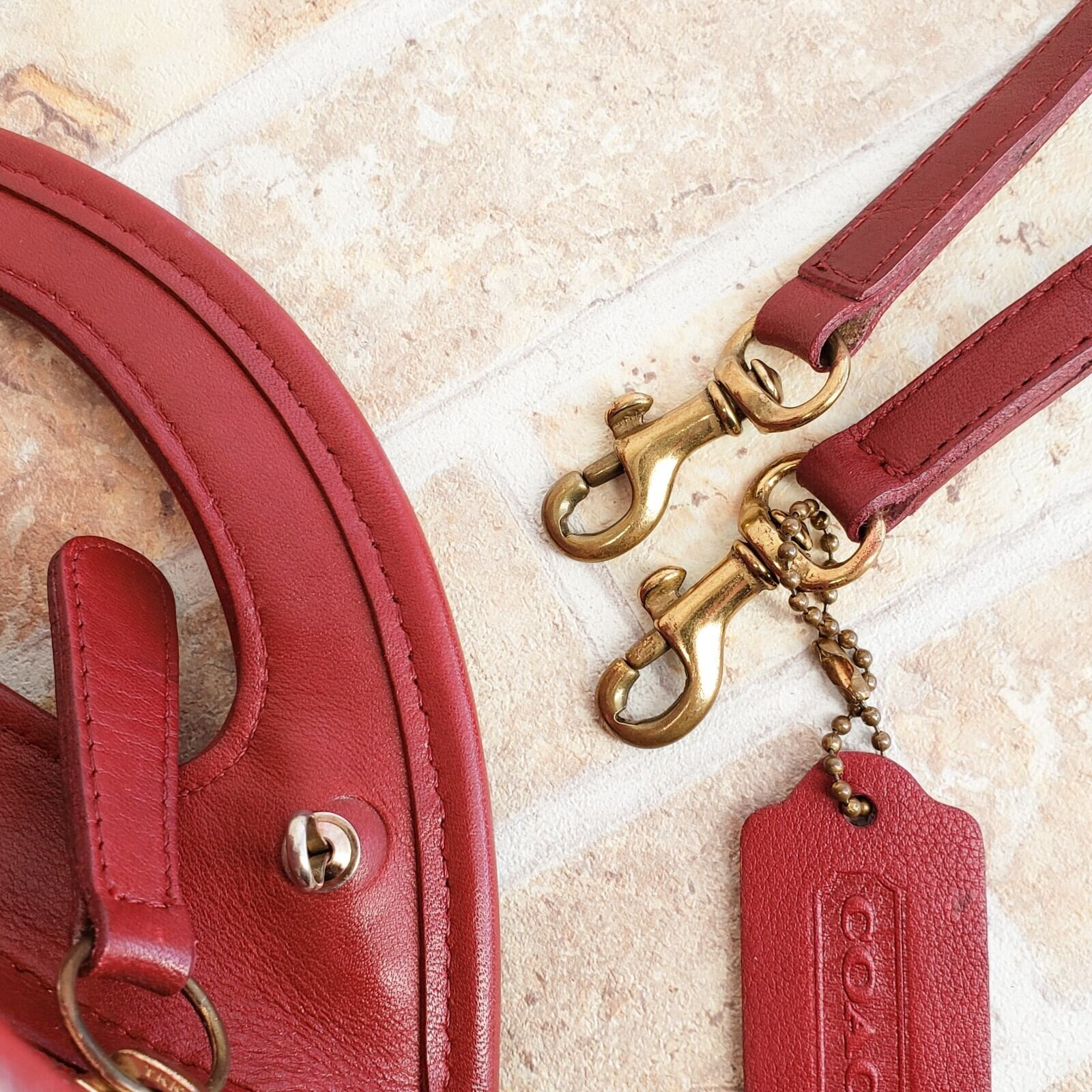 オールドコーチ ☆ USA製 2WAY レザー ショルダーバッグ レッド 自立OK ハンドバッグ