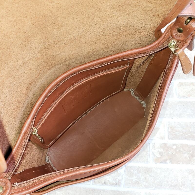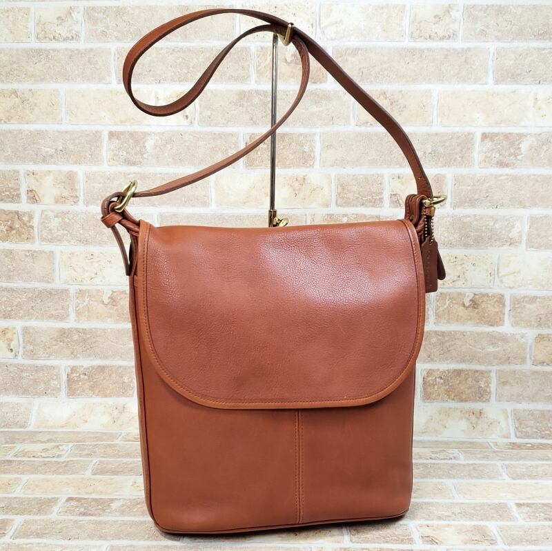 美品 オールドコーチ ☆ USA製 レザー フラップデザイン ショルダーバッグ キャメルブラウン ユニセックス