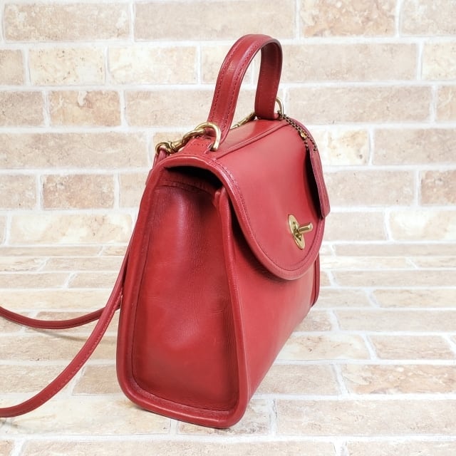 美品 オールドコーチ ☆ USA製 レザー ターンロック 2WAY ミニ ショルダーバッグ レッド ポシェット