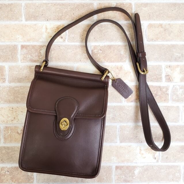 オールドコーチ ☆ USA製 ターンロック レザー ミニ ショルダーバッグ ダークブラウン